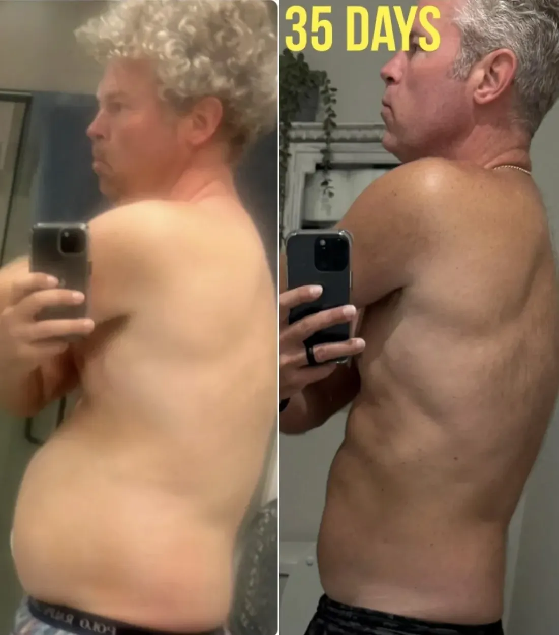 Waist and belly visibly slim; clothes fit a size (or two) better